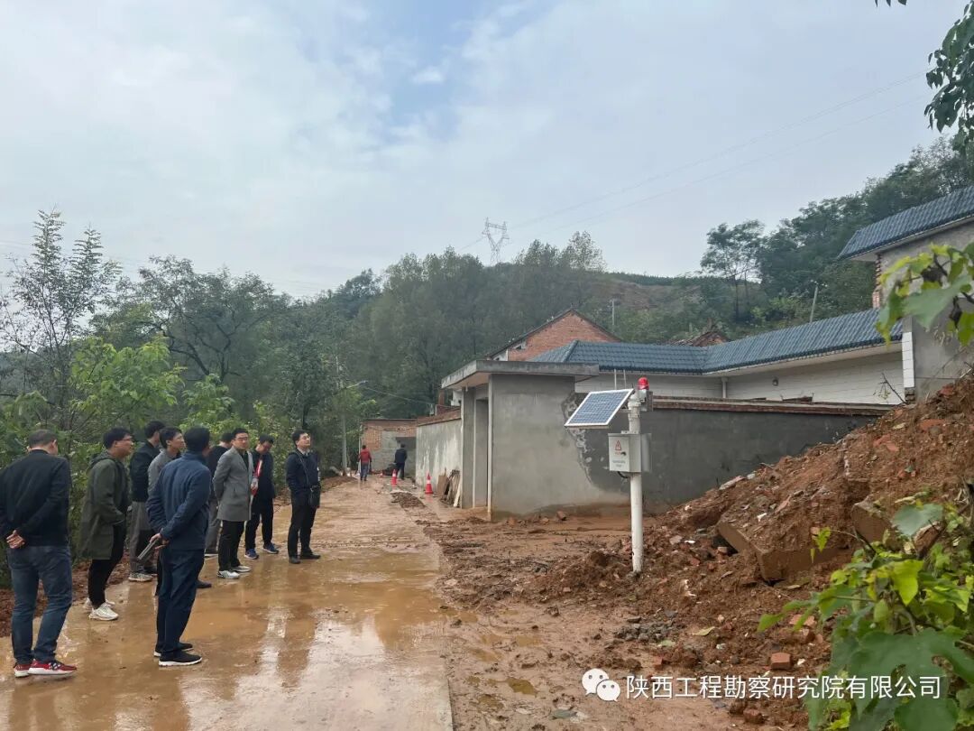 隨后,一行人對公司承擔(dān)的藍(lán)田縣焦岱鎮(zhèn)佘家灣地質(zhì)災(zāi)害滑坡預(yù)警監(jiān)測點(diǎn)進(jìn)行了實(shí)地踏勘和調(diào)研。該項(xiàng)目2021年由環(huán)境一公司實(shí)施開展,本次持續(xù)降雨導(dǎo)致坡體發(fā)生了局部滑塌,坡體堆積物涌入村民房屋,根據(jù)現(xiàn)場監(jiān)測數(shù)據(jù),目前險情依舊存在。支隊(duì)技術(shù)骨干在現(xiàn)場對該災(zāi)害點(diǎn)的監(jiān)測工作提出了建議和改進(jìn)措施,力保預(yù)警監(jiān)測工作有效運(yùn)行。